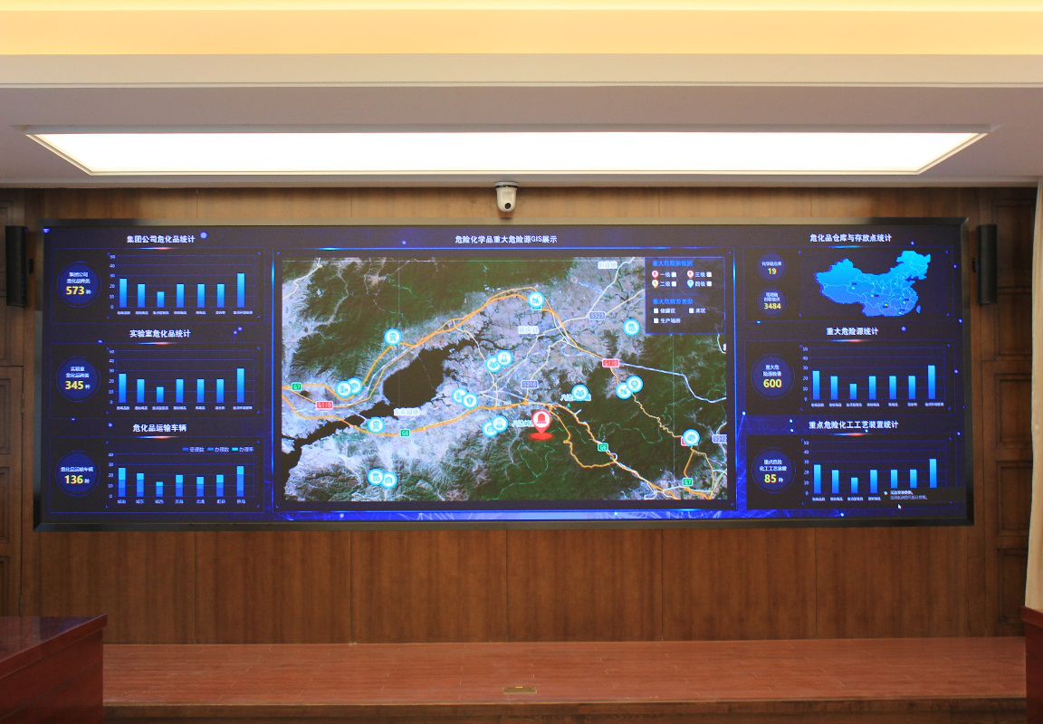 中國石油運輸公司調度中心項目位于北京順義和新疆烏魯木齊兩地,兩地調度中心各建1套1.56mm的LED監(jiān)控大屏,并重點對兩地視頻會議功能進行升級,由原來模擬視頻會議終端升級為高清終端,實現雙路高清攝像機信號的實時切換及雙流顯示。保證兩地調度中心會場互聯互通,實現視頻交流,通過集團M